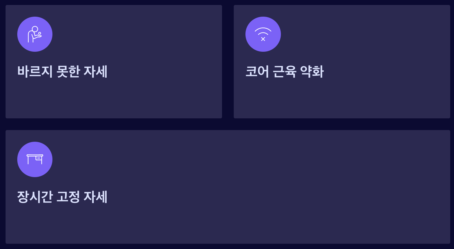 - 가장 흔한 원인: 잘못된 자세와 약한 코어 근육입니다. 일상 습관을 고치는 것이 첫 번째 해결책이에요.
